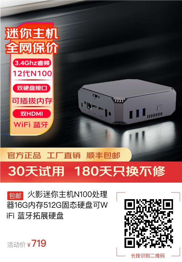 火影迷你主机N100处理器16G内存512G固态硬盘可WiFi 蓝牙拓展硬盘